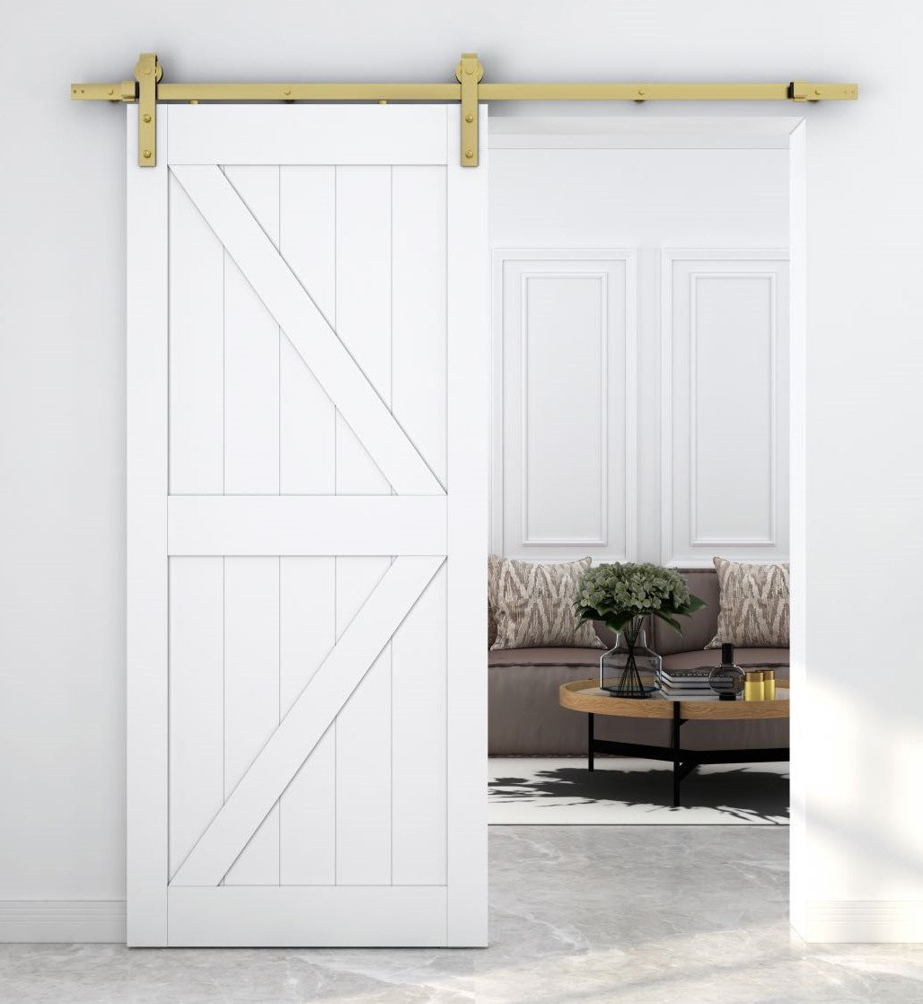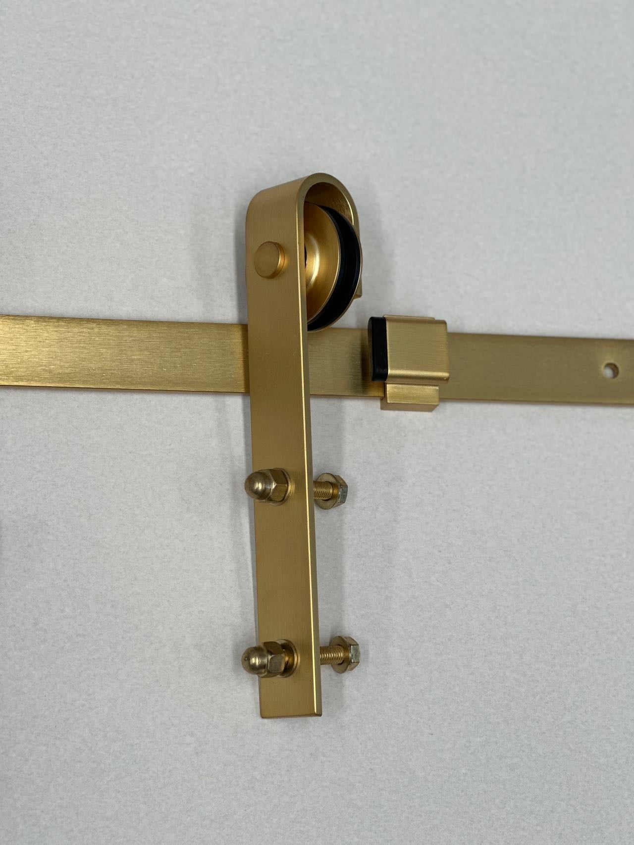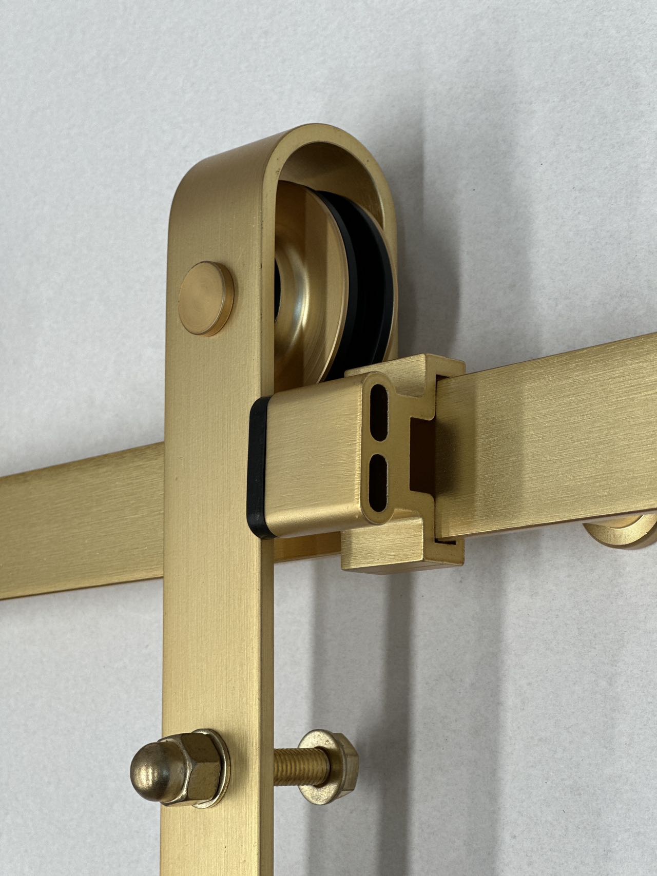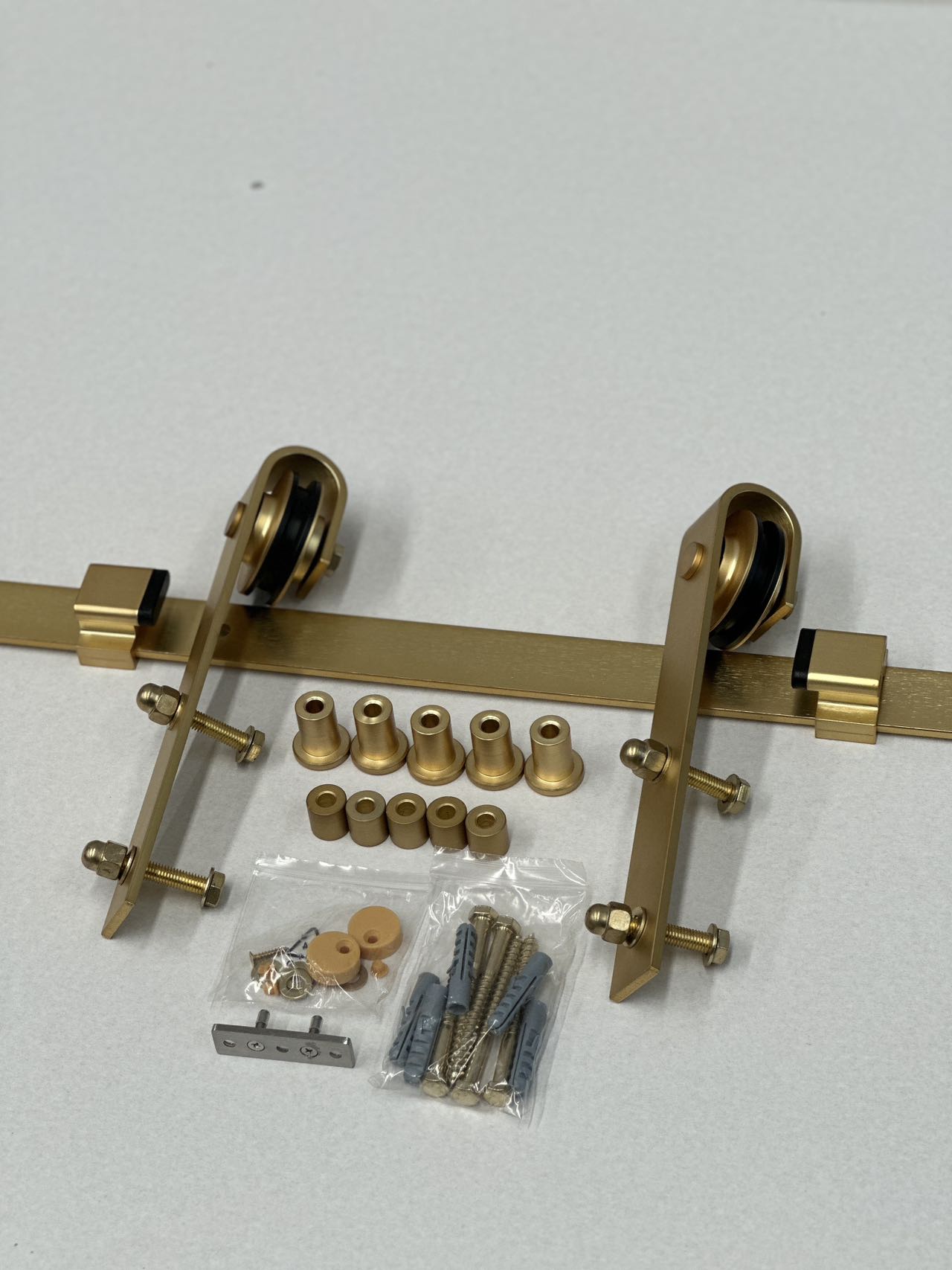 Aubarndoor has the wide rang product line of Sliding Barn Door. Our Golden Finish Sliding Barn Door Hardware GB02, the hardware kit comes in a complete kit with constructions, easy to install.