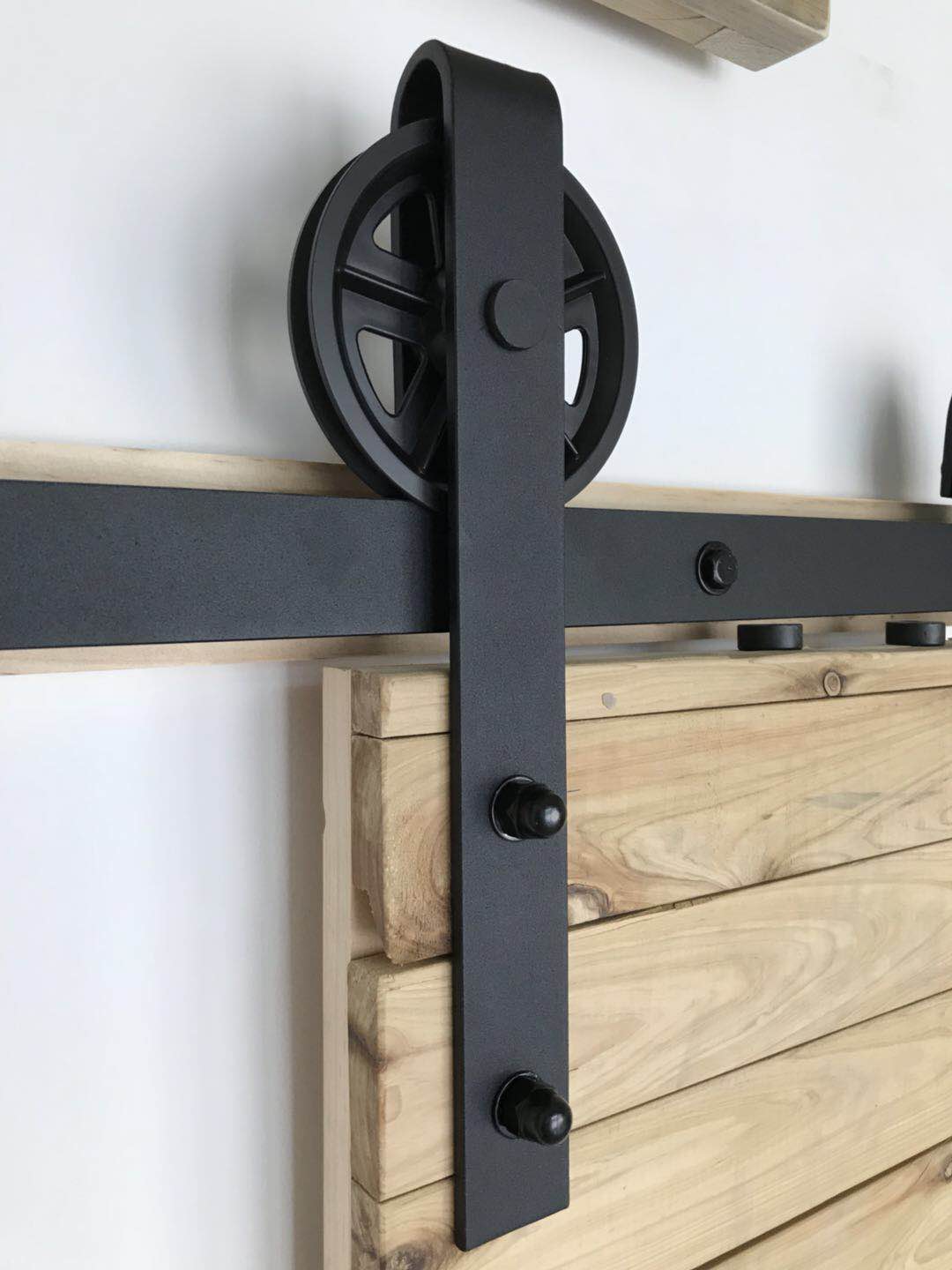 Black Sliding Barn Door Hardware BB09 - Made  of iron and POM, black powder coated, comes in a complete kit with constructions, easy to install.