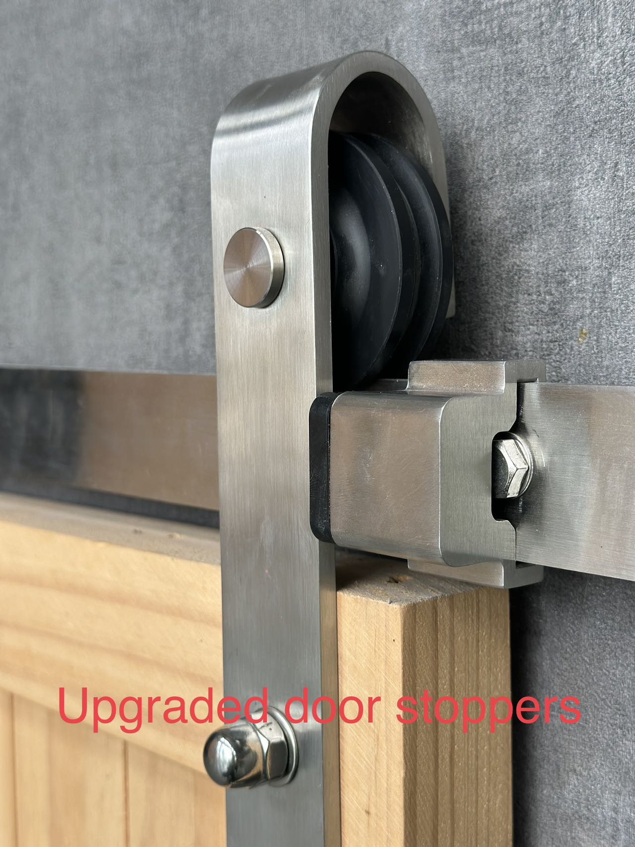 Stainless Steel Sliding Barn Door Hardware SS01 - Made of 304-grade stainless steel and POM, comes in a complete kit with constructions and is easy to install.